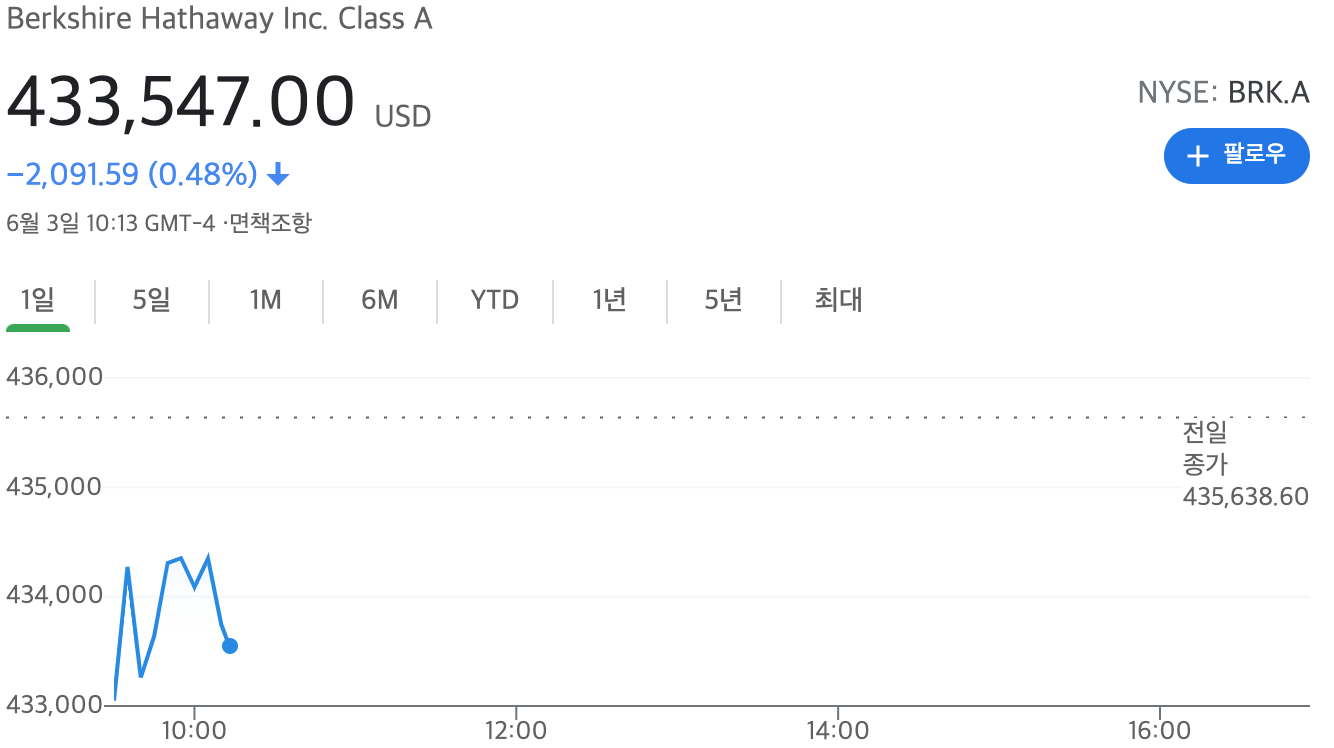 두번째 예로 버크셔헤서웨이의 경우는 Class A와 Class B가 존재하는데요.